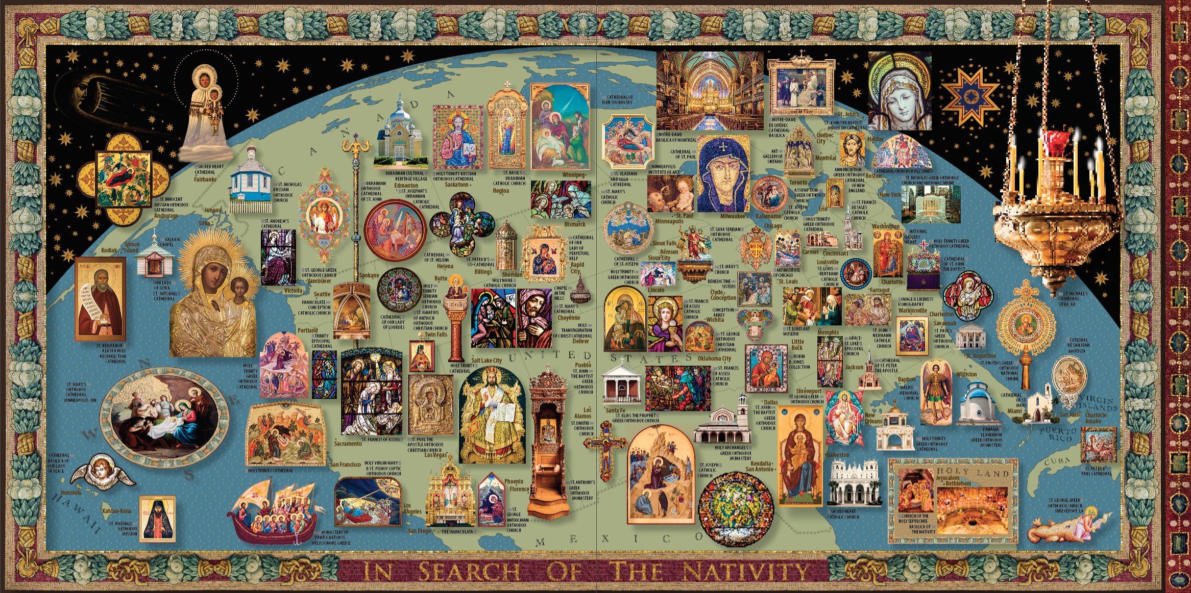 In the West from Alaska to Puerto Rico and from Newfoundland to Hawaii, and in the East to the Holy Land — a map is dotted with the highlights of a pilgrimage in search of the Nativity.